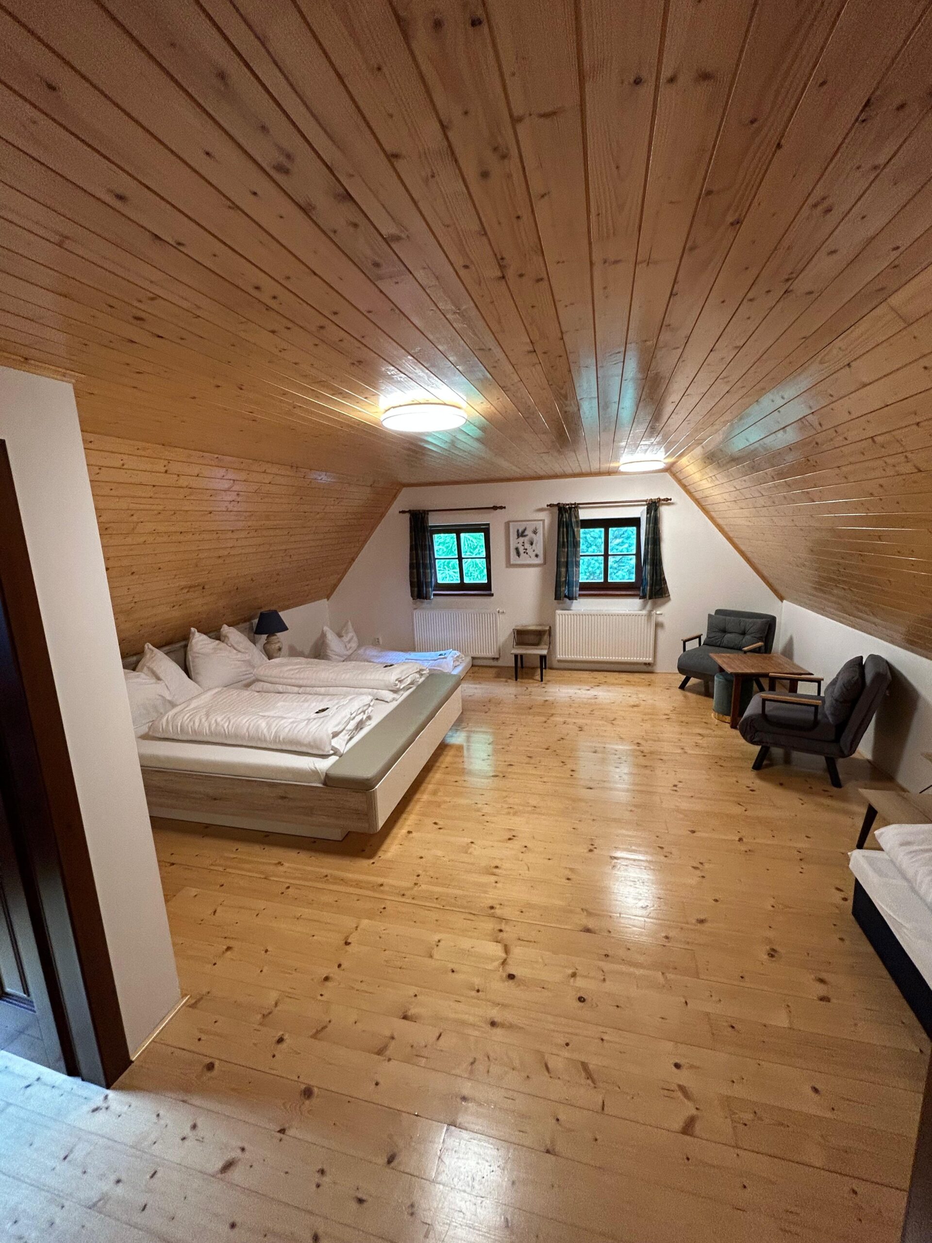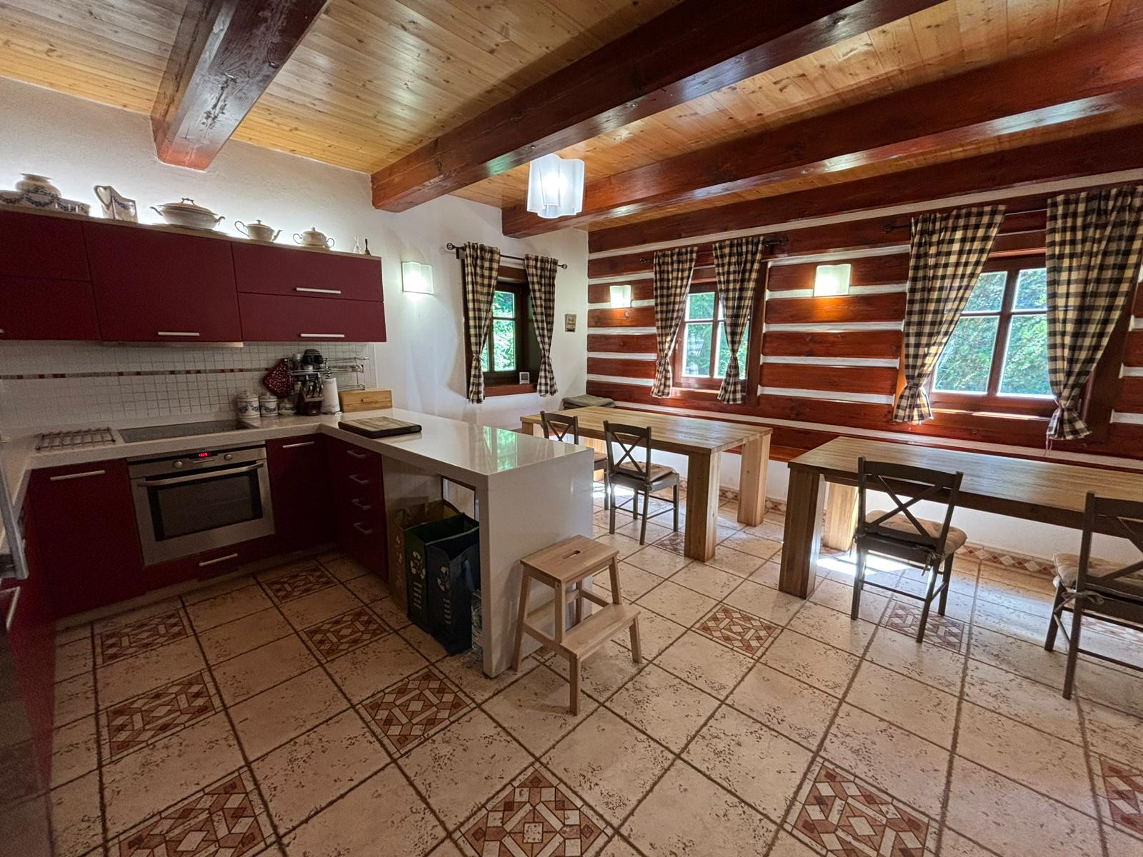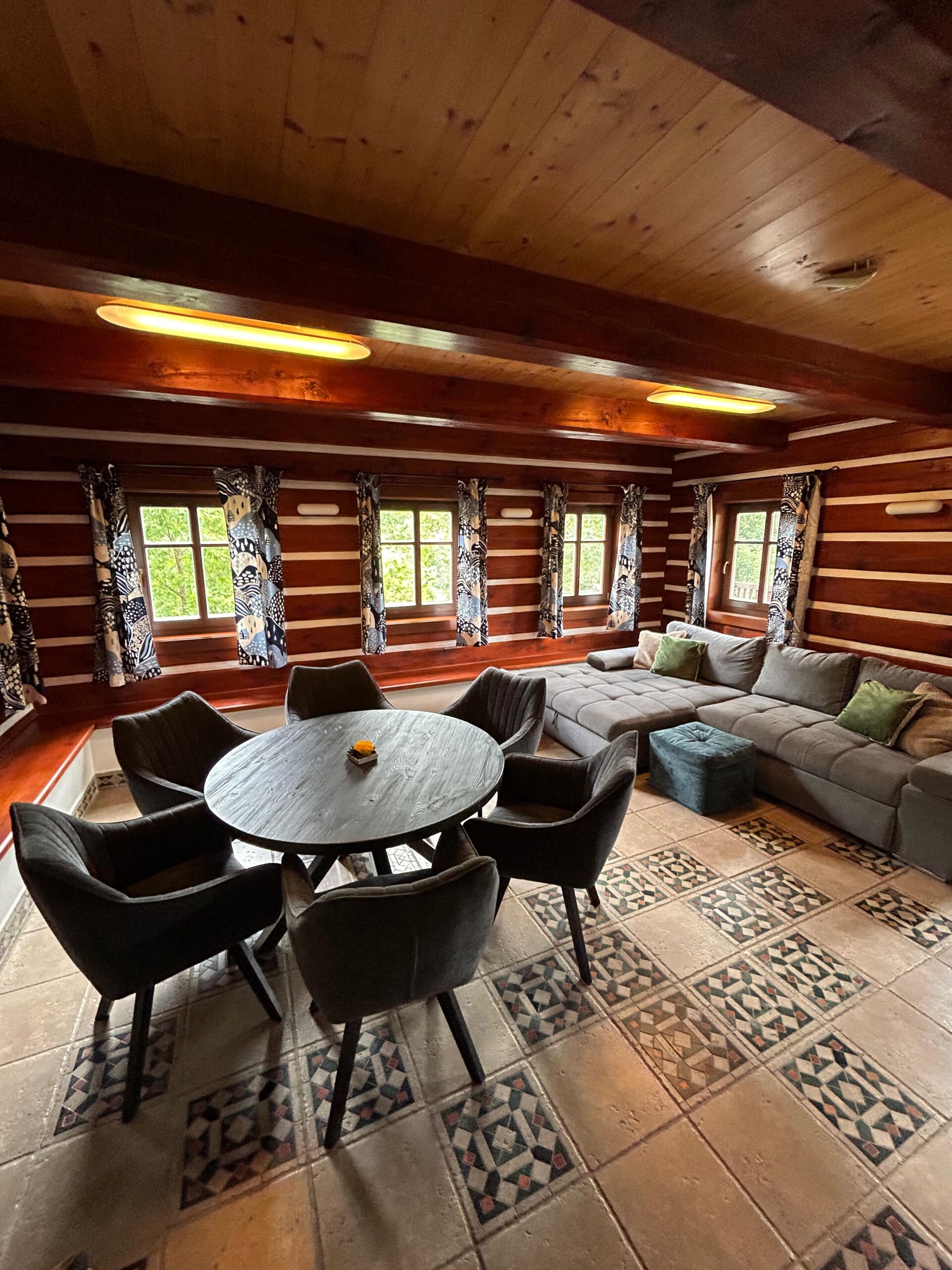Ukázky interiéru – společenská místnost, pokoje, kuchyň, jídelna, sauna