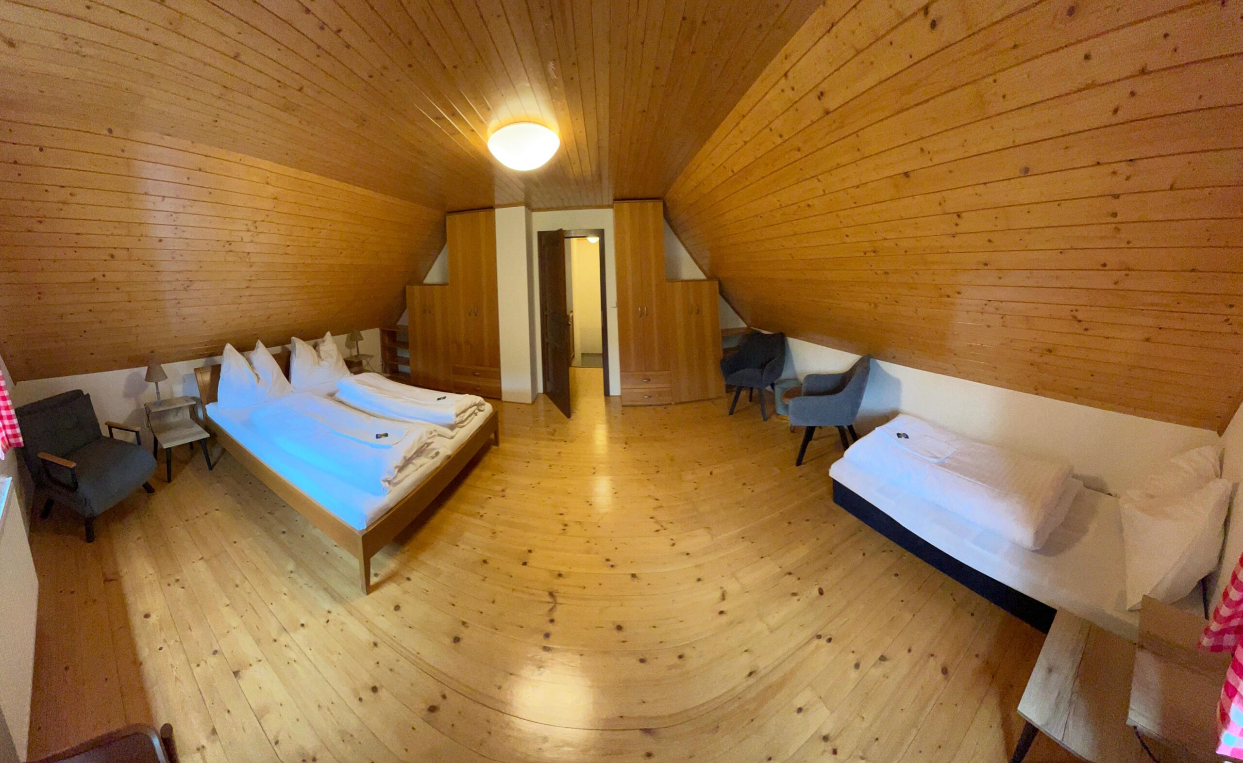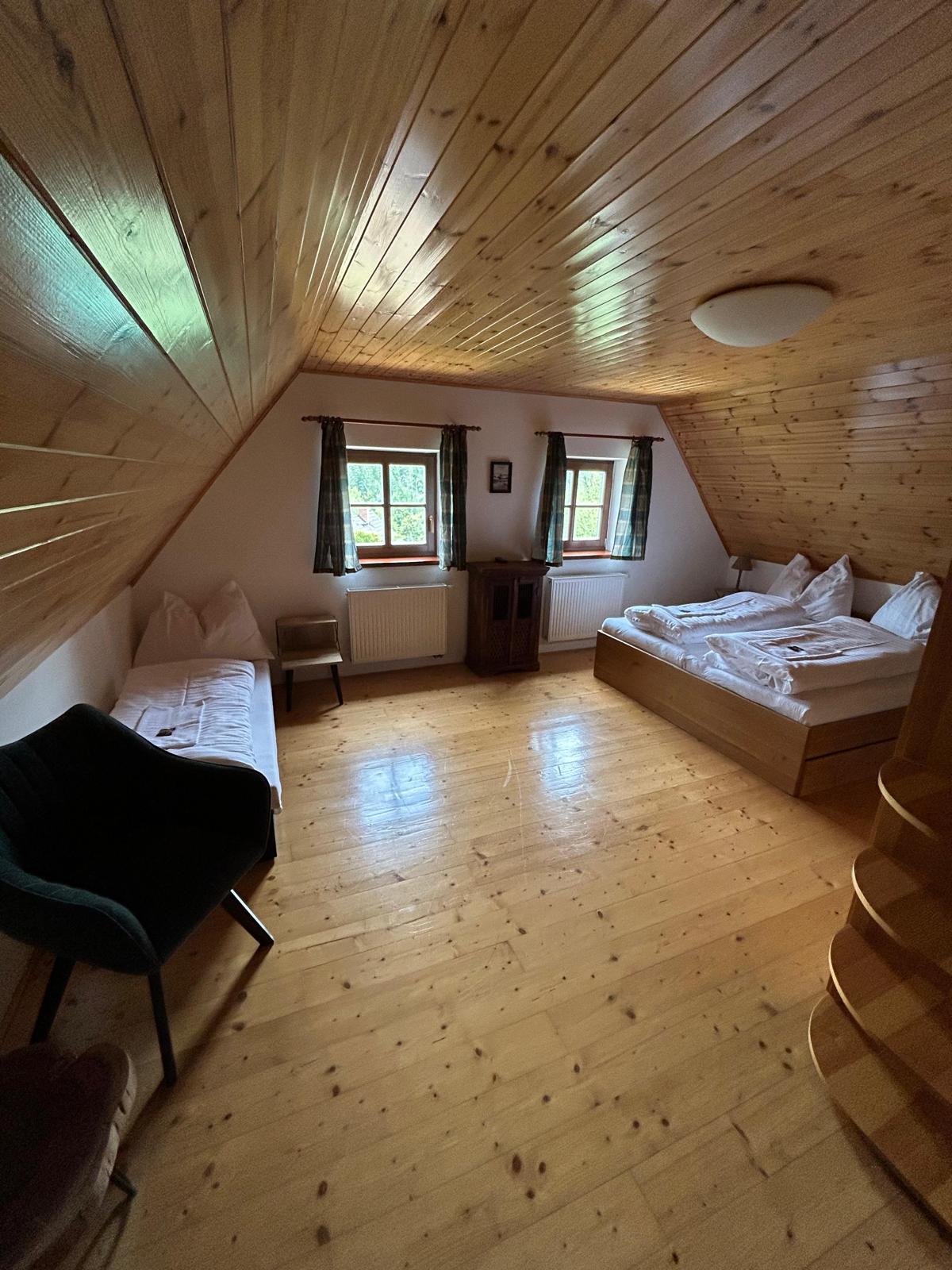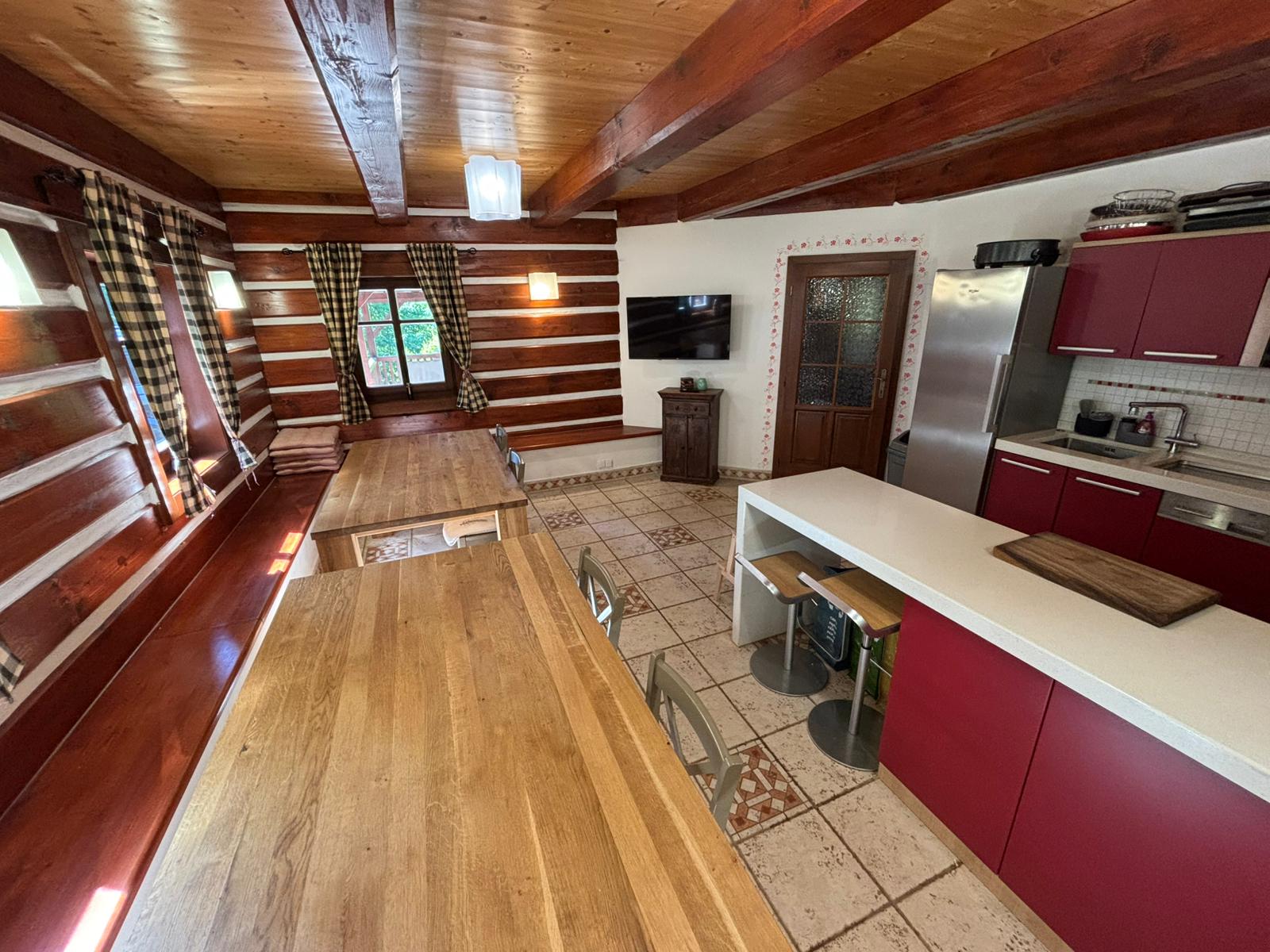 Ukázky interiéru – společenská místnost, pokoje, kuchyň, jídelna, sauna